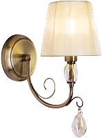 Бра Freya Peta FR2004WL-01BZ; Материал каркаса: металл, стекло; Материал плафона/абажура: текстиль; Подключение: к осветительной сети; Высота: 31 см; Длина: 24.5 см; Ширина: 14 см