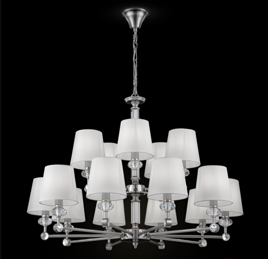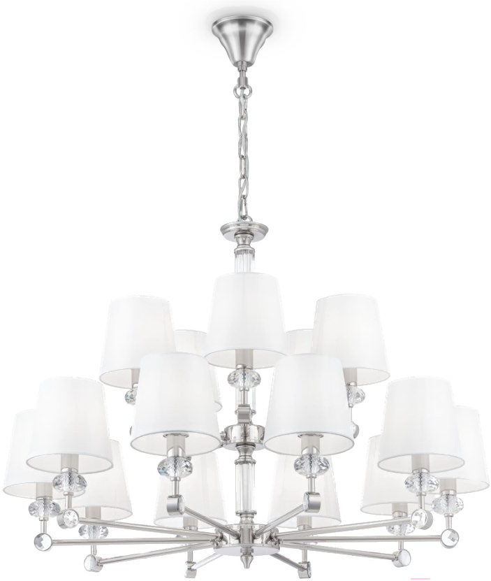 Люстра Maytoni Riverside MOD018PL-15CH; Количество ламп: 15; Материал каркаса: металл, стекло; Материал плафона/абажура: текстиль; Высота: 87;87 см; Длина: 89 см; Ширина: 89 см