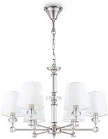 Люстра Maytoni Riverside MOD018PL-06CH; Количество ламп: 6; Материал каркаса: металл, стекло; Материал плафона/абажура: текстиль; Высота: 68;68 см; Длина: 66 см; Ширина: 66 см