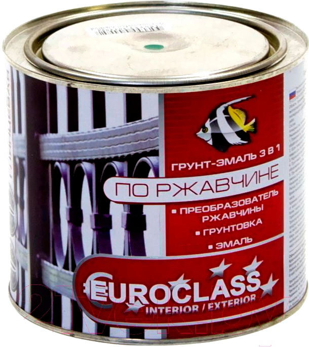 Краска декоративная Euroclass По ржавчине RAL 9003 (1.9кг, белый); Назначение: для металлических изделий, для деревянных изделий; Тип работ: внутренние, наружные; Вид окрашиваемого материала: металл, дерево; Цвет: белый; Степень глянца: глянцевая; Свойства: атмосферостойкая, износостойкая; Название оттенка: белый