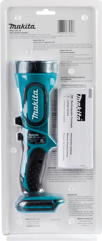 Фонарь Makita DML185; Питание: аккумулятор; Зарядка: от сети 220 V; Назначение фонаря: профессиональный, универсальный; Световой поток: 180 Лм
