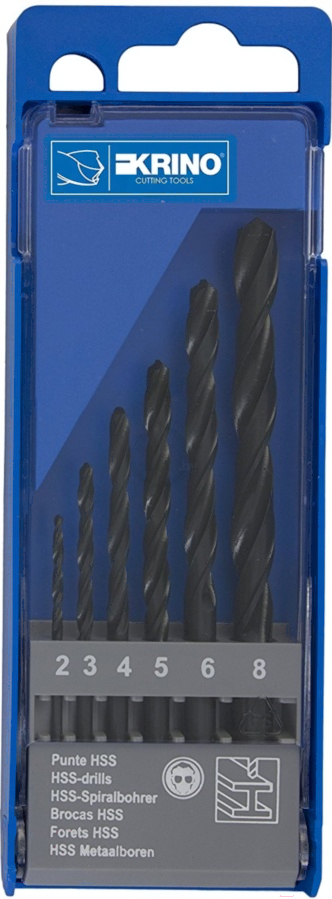 Набор сверл Krino 01016204; Обрабатываемый материал: металл; Вид хвостовика: цилиндрический; Диаметр рабочий (мм): 6, 8, 4, 2, 3, 5
