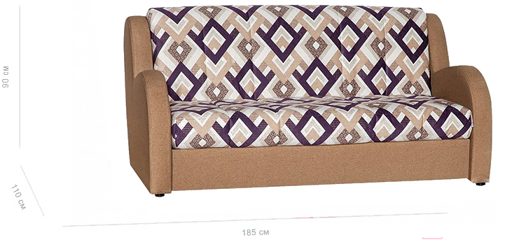 Диван Rivalli Барон 155 без ящика с ППУ (Ethnos 02 Tetra hazel); Длина: 185 см; Механизм трансформации: аккордеон; Настил: пенополиуретан (поролон); Обивка: ткань; Глубина: 110 см; Высота: 90 см; Ширина спального места: 157 см