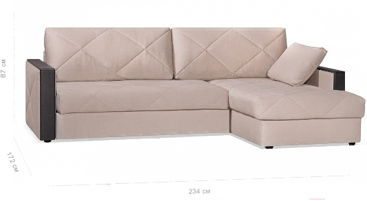 Диван угловой Rivalli Мюнхен Next правый с НПБ (Prince 04); Длина: 234 см; Механизм трансформации: дельфин; Настил: блок независимых пружин; Обивка: ткань; Глубина: 172 см; Высота: 87 см; Ширина спального места: 151 см