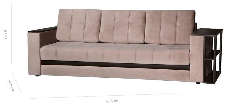 Диван Rivalli Атланта Next со столиком справа с НПБ (Elva Desert); Длина: 250 см; Механизм трансформации: тик-так (пантограф); Настил: блок независимых пружин; Обивка: ткань; Глубина: 108 см; Высота: 90 см; Ширина спального места: 148 см