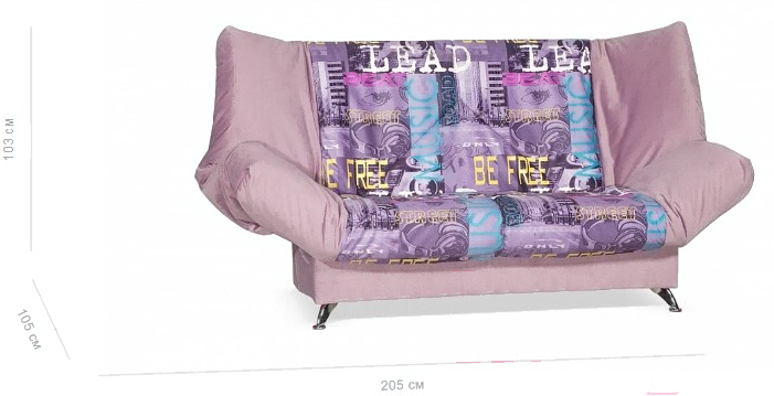 Диван Rivalli Санта с ППУ (Music Violet Elva Lavanda); Длина: 205 см; Механизм трансформации: клик-клак; Настил: пенополиуретан (поролон); Обивка: ткань; Глубина: 105 см; Высота: 103 см; Ширина спального места: 140 см