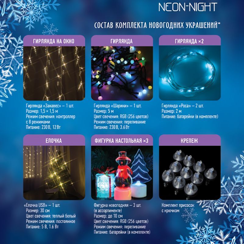 Праздничный набор гирлянд и светодиодных фигурок для украшения Комнаты (в комплекте 8 изделий), цвет: Теплый белый