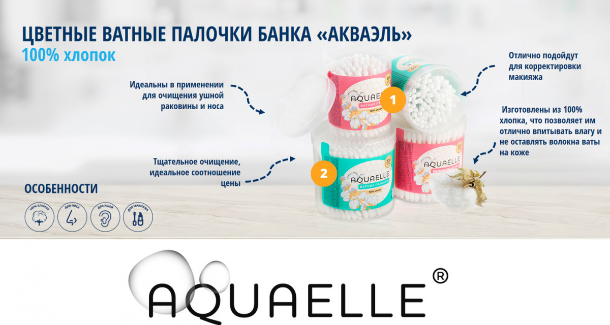 Хлопковые ватные палочки в баночке, AQUAELLE , 200 шт.