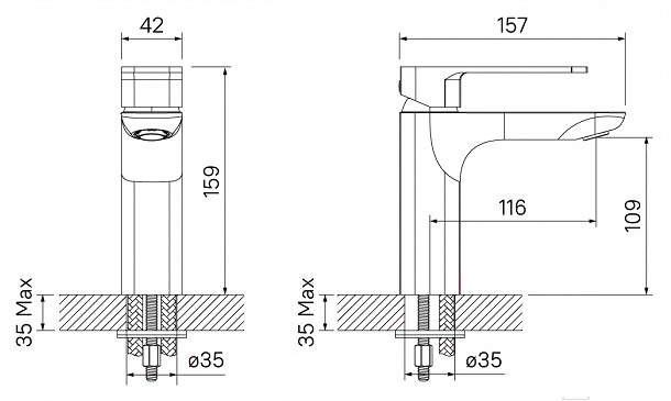 Смеситель Iddis Slide SLIBG00i01; Материал: латунь; Длина (вылет) излива: 116;116 мм; Высота излива: 109;109 мм; Длина: 157 мм; Назначение: для умывальника; Монтаж: на раковину или столешницу; Механизм: однозахватный