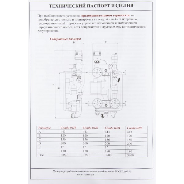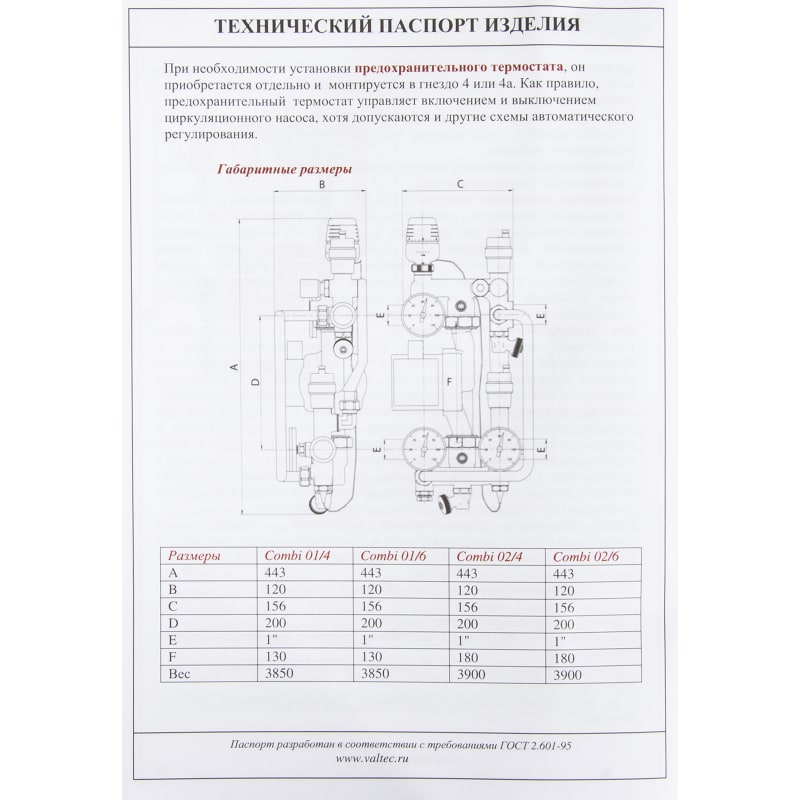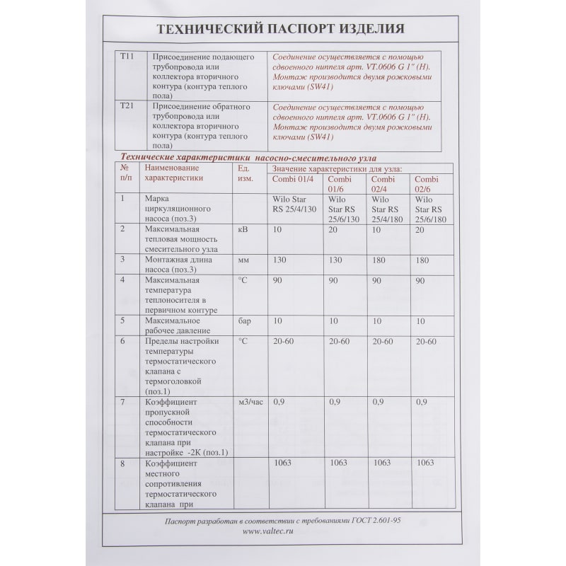 Насосно-смесительный узел Valtec Combi, с термоголовкой, без насоса, 180 мм