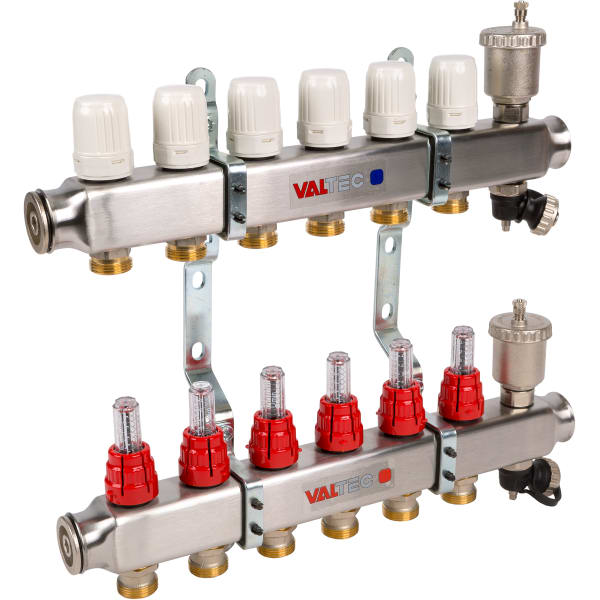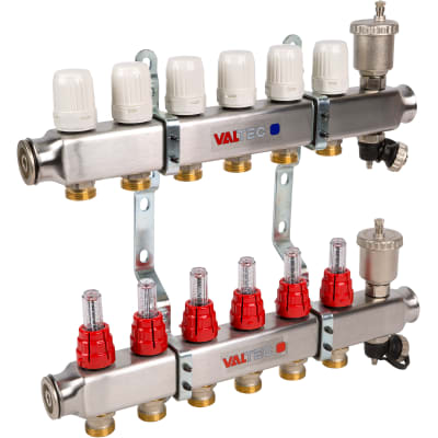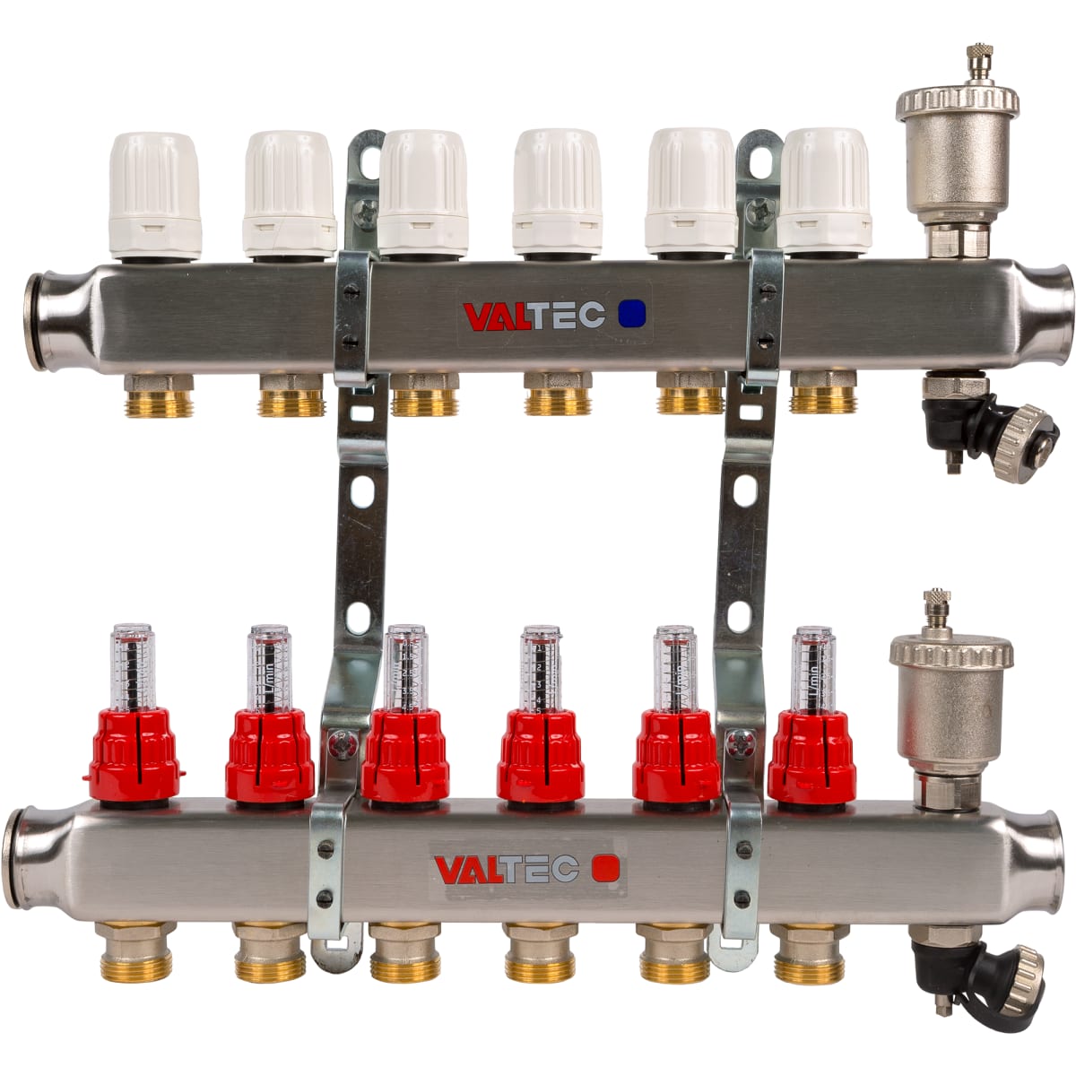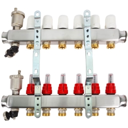 Коллекторная группа Евроконус, со встроенными расходомерами в сборе, 1"х3/4", с 6 выходами