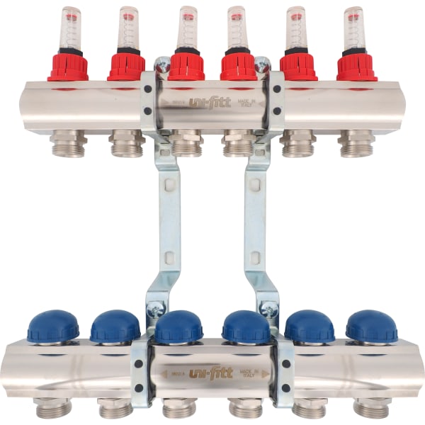 Коллекторная группа, 1"х3/4", с 6 выходами