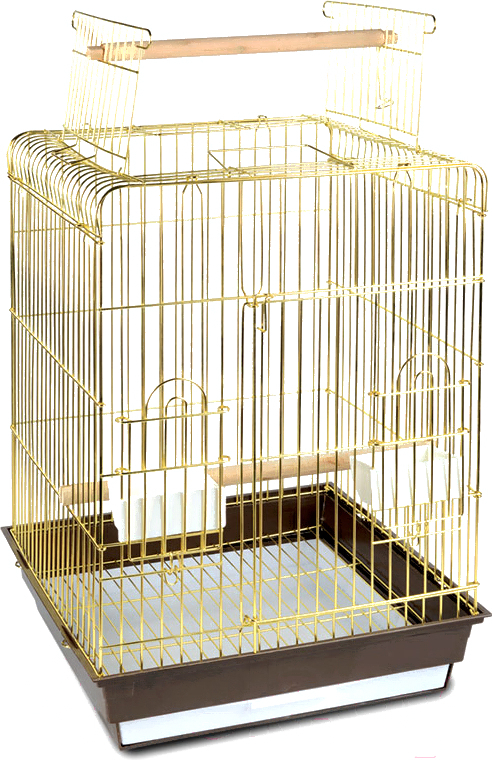 Клетка для птиц Triol 1038AG / 50611006; Ширина: 47.5 см; Длина: 47.5 см; Высота: 86 см; Виды птиц: средние птицы; Материал прутьев: эмалированная сталь; Материал основы: пластик; Комплектация: жердочка, кормушки; Цвет: коричневый, золото