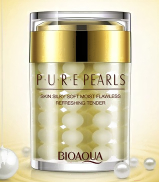 Крем для лица Bioaqua Pure Pearls увлажняющий с натуральной жемчужной пудрой (60г); Действие: питание, восстанавливающее, увлажняющее, выравнивание тона, осветляющее, защита от солнца; Тип кожи: для всех типов; Пол: для женщин; Возраст: 18+; Время применения: универсальное; Коллекция: Pure Pearls (Bioaqua)