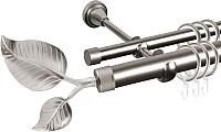 Карниз для штор АС ФОРОС Grace D25Г/16Г + наконечники Лист большой (1.8м, сатин); Крепление: настенный; Материал: металл; Количество рядов: 2; Крепления для штор: есть, кольца, крючки; Длина: 180 см