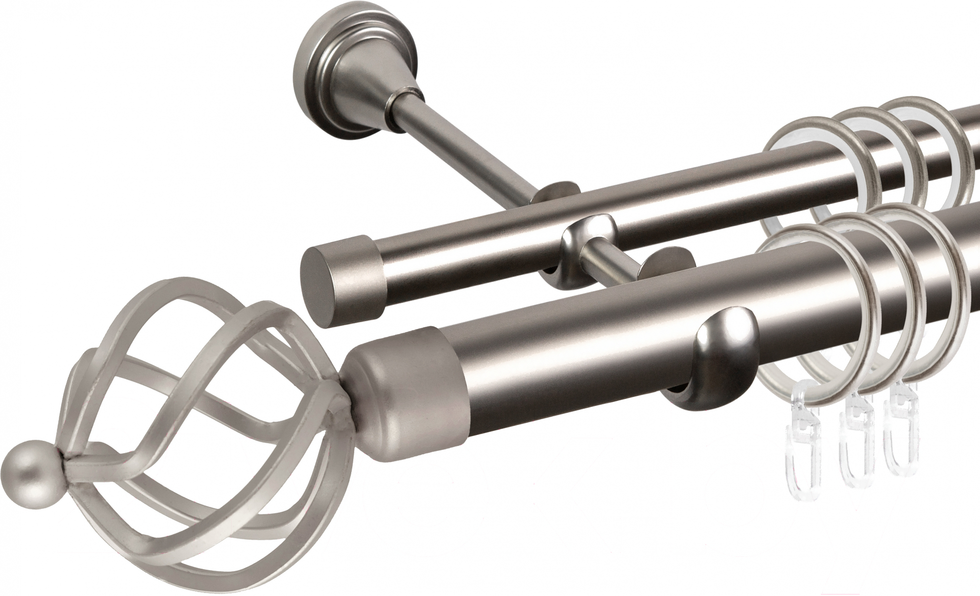 Карниз для штор АС ФОРОС Grace D25Г/16Г + наконечники Булава (3м, сатин); Крепление: настенный; Материал: металл; Количество рядов: 2; Крепления для штор: есть, кольца, крючки; Длина: 300 см