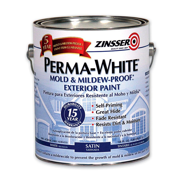 Фасадная самогрунтующаяся краска PERMA-WHITE Mold & Mildew-Proof Exterior Paint – высококачественная акриловая краска на водной основе, предназначенная для окраски фасадов и внутренних помещений, в том числе с повышенной влажностью, где велик развития грибка или плесени.