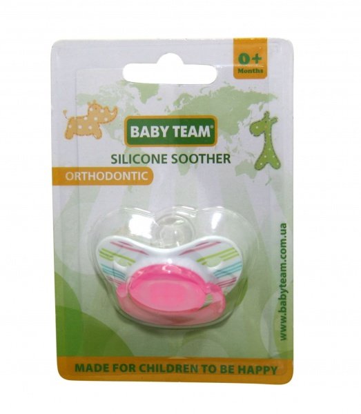 Силиконовая пустышка BABY TEAM ортодонтическая 1шт. 0+ розовый (3001)