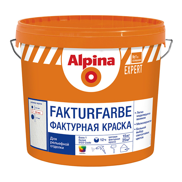 Краска ВД-АК Alpina EXPERT Fakturfarbe База 3 (Альпина ЭКСПЕРТ Фактурфарбе База 3), прозрачная, 14 кг