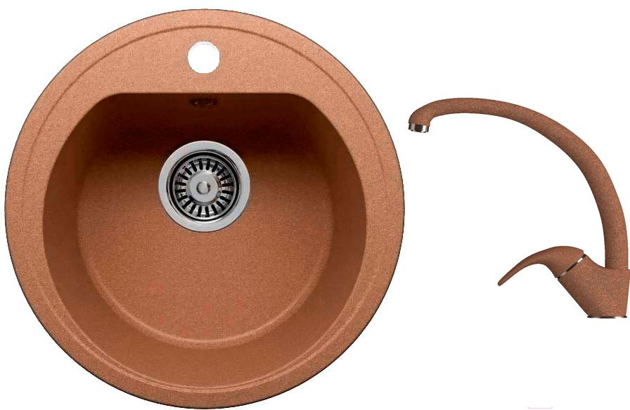 Мойка кухонная F-05 + смеситель Эко Высокий (терракот)