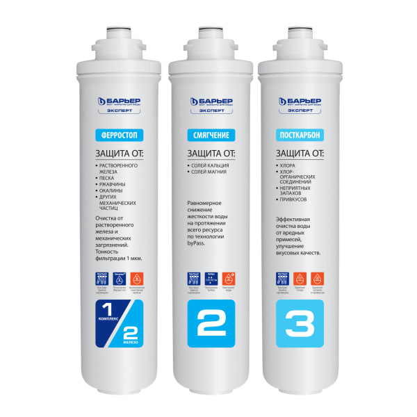 Набор картриджей Барьер Эксперт Комплекс умягчение и обезжелезивание, 3 ступени
