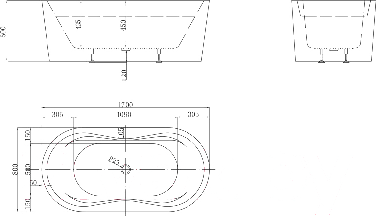 Ванна акриловая BelBagno BB407-1700-800; Размещение: отдельностоящая; Гидромассаж: нет; Особенность модели: подлокотники литые; Защита от скольжения: есть; Толщина стенок: 5;5 мм