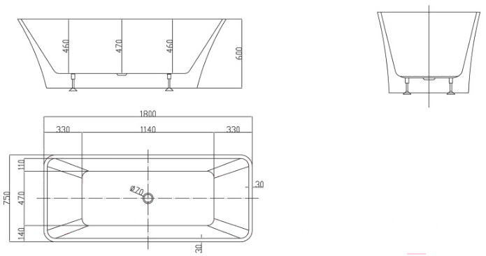 Ванна акриловая BelBagno BB60-1800-750; Размещение: отдельностоящая; Гидромассаж: нет; Защита от скольжения: есть; Толщина стенок: 5;5 мм; Сифон в комплекте: есть