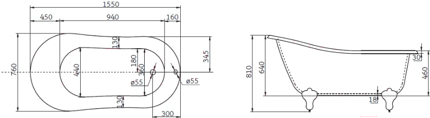 Ванна акриловая BelBagno BB06-1550; Размещение: отдельностоящая; Гидромассаж: нет; Особенность модели: высокая спинка; Объем: 168 л