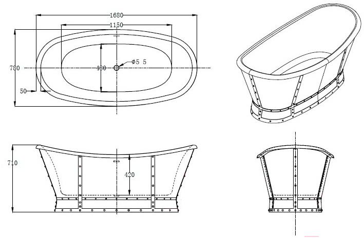Ванна акриловая BelBagno BB33-CF36; Размещение: отдельностоящая; Гидромассаж: нет; Защита от скольжения: есть; Толщина стенок: 5;5 мм
