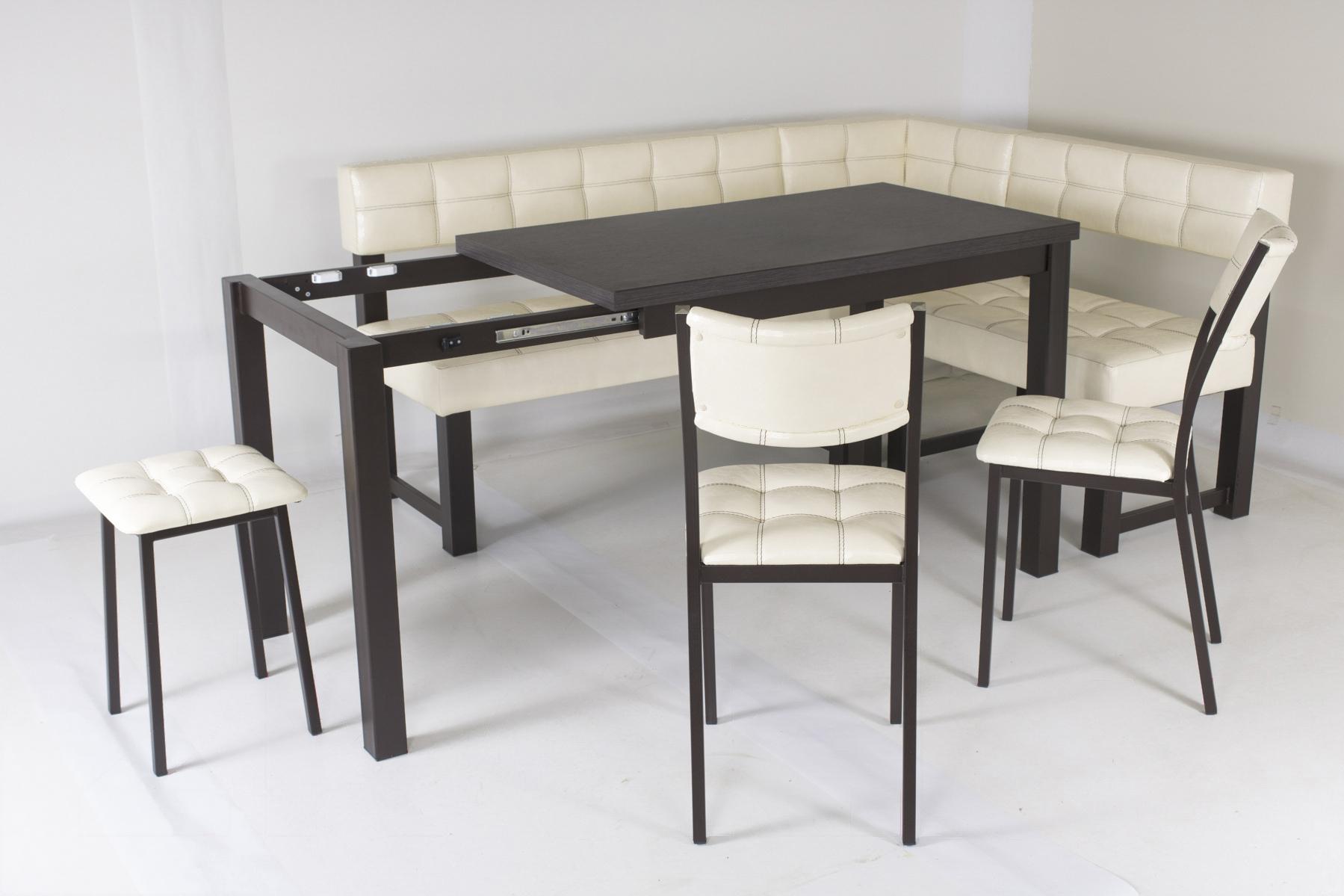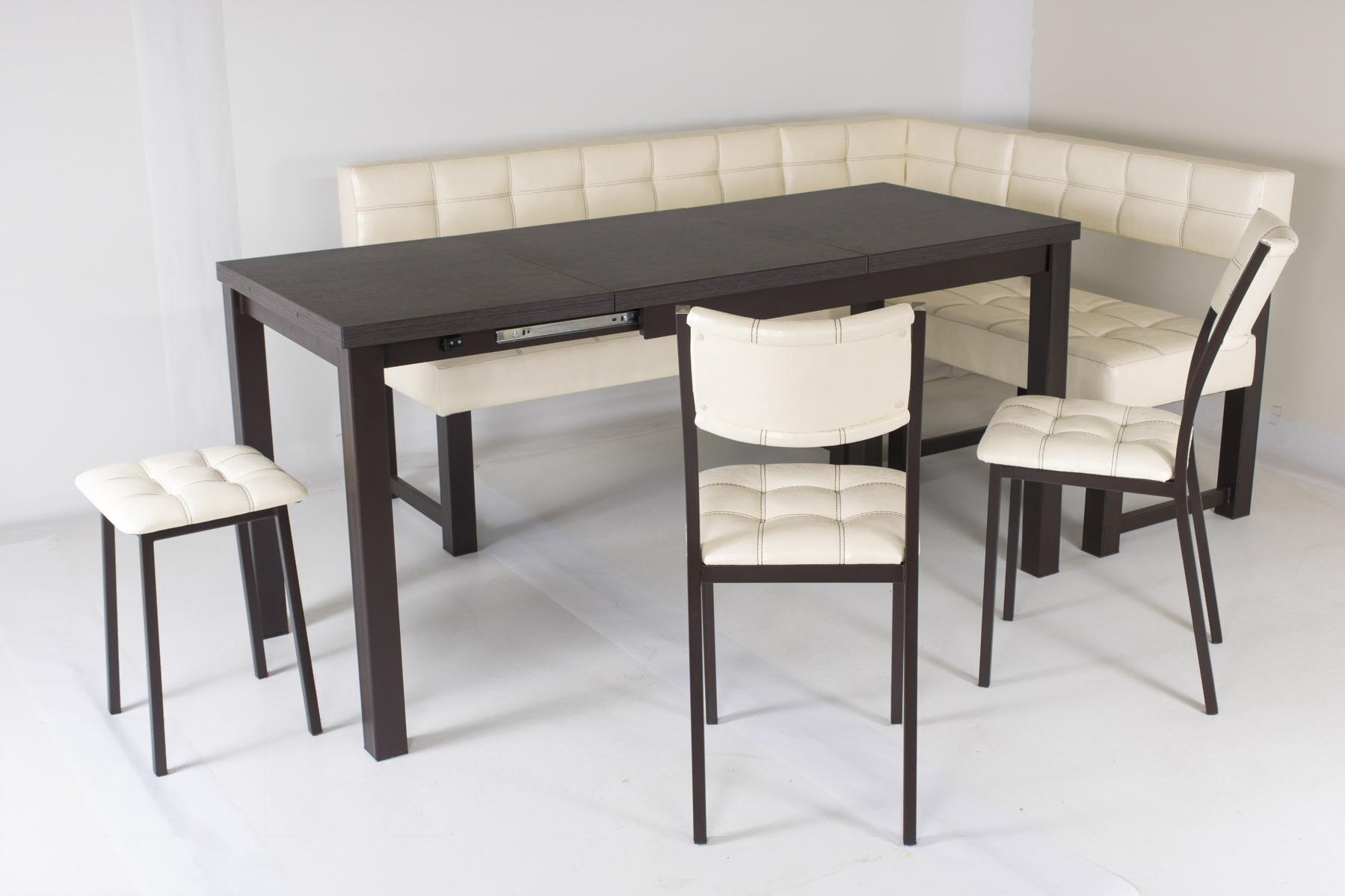 Обеденная группа AMC К2.3С233 (темно-коричневый/слоновая кость/баменда венге темный); Тип стола: обеденная группа; Материал опор: металл; Ширина: 67 см; Длина: 110 см; Высота: 76 см; Материал столешницы: ЛДСП; Конструкция: раздвижной; Длина в разложенном состоянии: 160 см; Максимальная нагрузка: 100 кг; Стиль: нейтральный