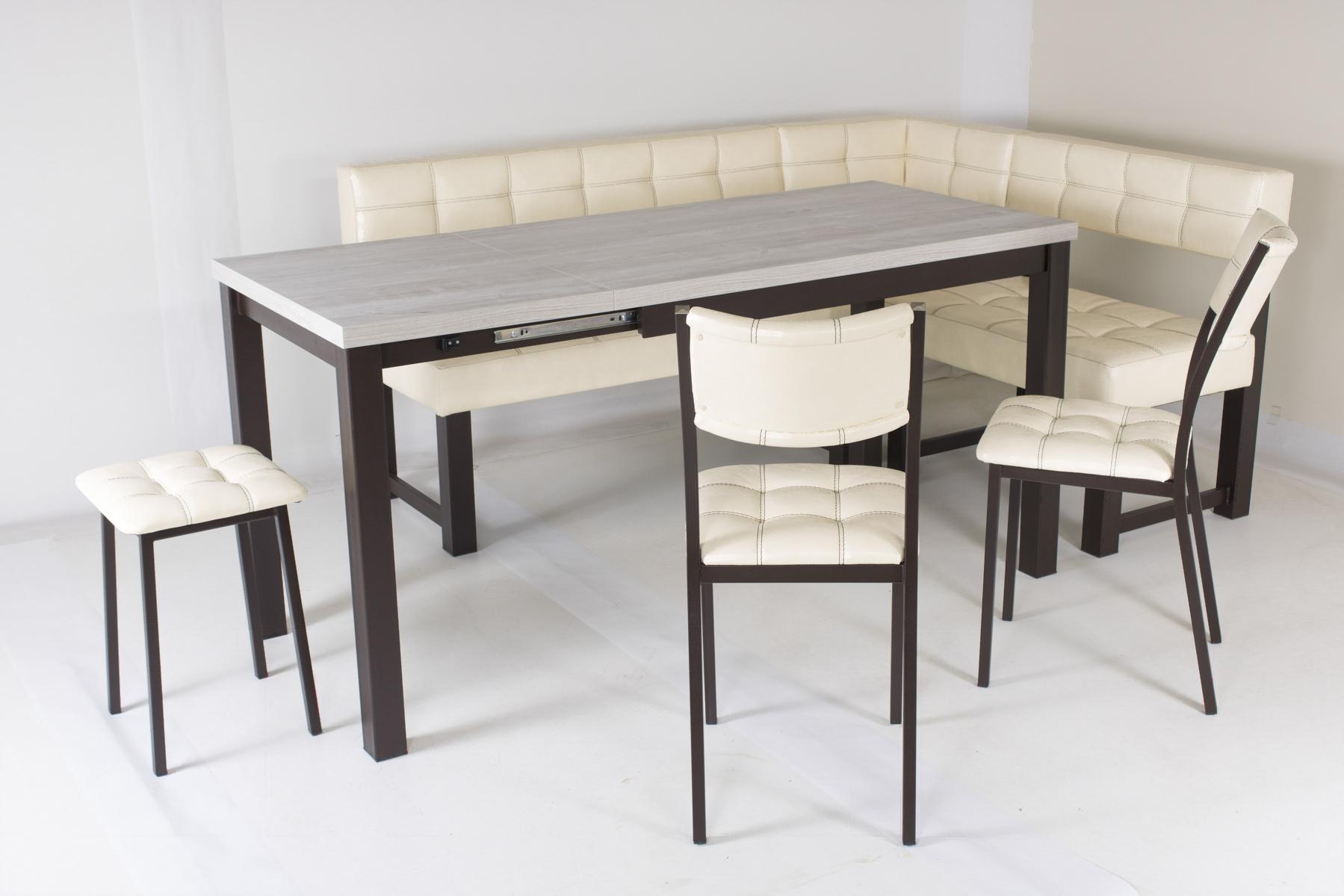 Обеденная группа AMC К2.3С232 (темно-коричневый/слоновая кость/сосна кастина); Тип стола: обеденная группа; Материал опор: металл; Ширина: 67 см; Длина: 110 см; Высота: 76 см; Материал столешницы: ЛДСП; Конструкция: раздвижной; Длина в разложенном состоянии: 160 см; Максимальная нагрузка: 100 кг; Стиль: нейтральный