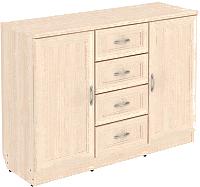 Комод Уют Сервис Гарун 707 (молочный дуб); Материал фасада: ЛДСП, МДФ; Материал каркаса: ЛДСП, ДВП; Ящики: 4 шт; Полки: 4 шт; Высота: 81.8 см; Ширина: 112.6 см; Глубина: 37 см