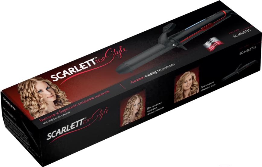 Плойка Scarlett SC-HS60T35 (черный/красный); Поверхность насадок/бигуди: керамическая; Регулировка температуры: есть; Режим работы: круглая плойка; Тип: плойка; Макс. диаметр завивки: 25 мм