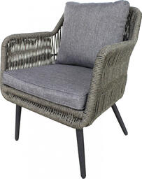 Комплект садовой мебели Sundays Magnolia RDS-305; Состав комплекта: кресло, стол; Материал основы: алюминий; Материал столешницы: закаленное стекло; Материал сиденья: ткань; Размеры стола (ДхШхВ): 105х105х73 см; Размеры стула/кресла (ДхШхВ): 47х56х108 см; Особенности конструкции: подлокотники