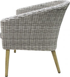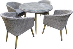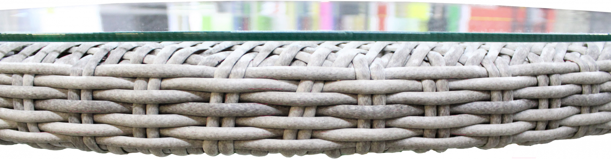 Комплект садовой мебели Sundays Camellia RDS-721; Состав комплекта: кресло, стол; Материал основы: алюминий, искусственный ротанг; Материал столешницы: закаленное стекло; Материал сиденья: ткань; Размеры стола (ДхШхВ): 100х100х75 см; Размеры стула/кресла (ДхШхВ): 60х65х78 см; Особенности конструкции: подлокотники