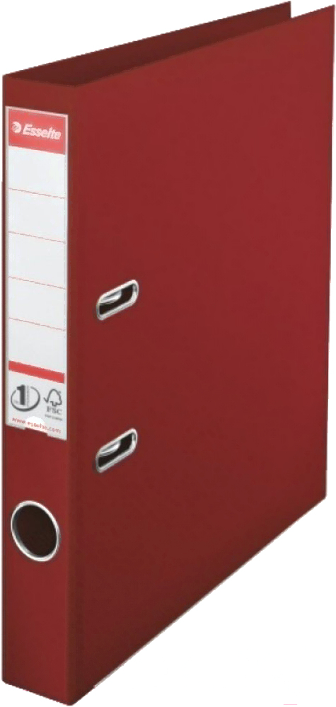 Папка-регистратор Esselte №1 / 811520 (бордовый); Количество файлов: 500; Фиксация документов: арочный механизм; Вместимость папки: 350 лист.; Количество отделений: 1; Формат: A4; Длина: 29 см; Ширина корешка: 5 см; Высота: 31.8 см