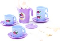 Набор игрушечной посуды Полесье Анюта / 80066; Посуда в комплекте: чашки, ложки, вилки, ножи, тарелки, кувшин; Количество предметов в наборе: 22 шт; Материал: пластик