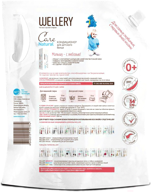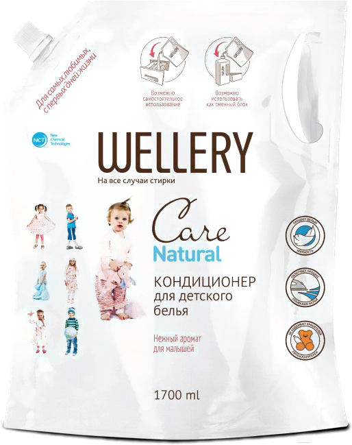Ополаскиватель для белья Wellery Care Natural Ванильная Ириска для детского белья (1.7л); Тип: ополаскиватель для белья; Тип стирки: ручная, машинная; Назначение: для детского; Объем: 1.7 л