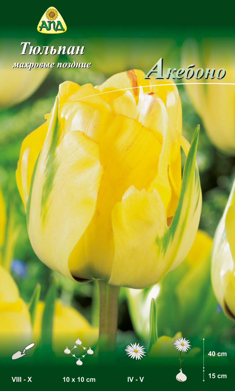 Семена цветов АПД Тюльпан Акебоно махровый поздний / A30691 (5шт); Способ размножения: луковица; Назначение цветов: для клумб, для срезки; Тип выращивания: открытый грунт; Продолжительность жизни: многолетнее; Период цветения: май, апрель; Высота взрослого растения: 40;40 см