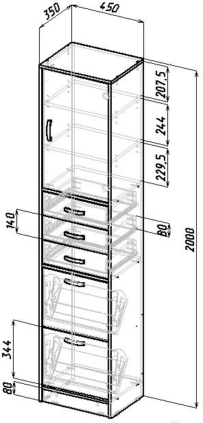 Секция в прихожую MFMaster Ольга (ОЯП) / МСТ-ПДО-ОЯ-ВД-20 (венге/дуб молочный); Тип: секция в прихожую; Материал фасада: ЛДСП; Материал каркаса: ЛДСП; Наполнение: полки; Ширина: 45 см; Глубина: 35 см; Высота: 200 см