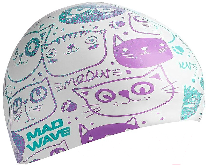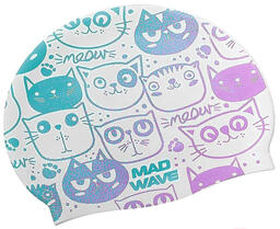 Шапочка для плавания Mad Wave Meow (белый); Назначение: универсальное; Дизайн: женский; Материал: силикон