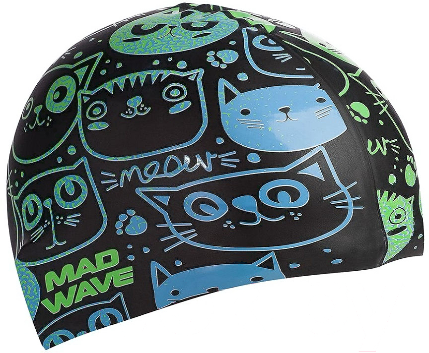 Шапочка для плавания Mad Wave Meow (зеленый); Назначение: универсальное; Дизайн: женский; Материал: силикон