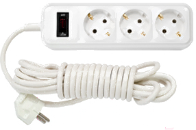Удлинитель Bylectrica У10-322 (5м); Тип: удлинитель; Общее кол-во розеток: 3; Типы выходных разъемов: Тип F (евророзетка с заземлением); Длина провода: 5 м; Суммарная мощность нагрузки: 2500 Вт; Максимальный ток нагрузки: 10 А