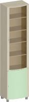 Шкаф-пенал с витриной Лером Валерия ШК-922-БД-З (дуб беленый с зелеными вставками); Назначение: для детской, для жилой комнаты, для столовой; Ширина: 54 см; Материал фасада: стекло, МДФ; Материал каркаса: ЛДСП; Наполнение: полки; Высота: 217.2 см; Глубина: 39.6 см