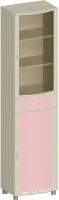 Шкаф-пенал с витриной Валерия ШК-921-БД-Р (дуб беленый с розовыми вставками)