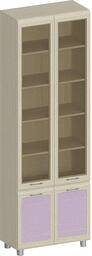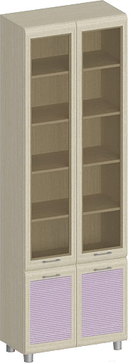 Шкаф с витриной Ксюша ШК-1836-БД-С (дуб беленый с сиреневыми вставками)