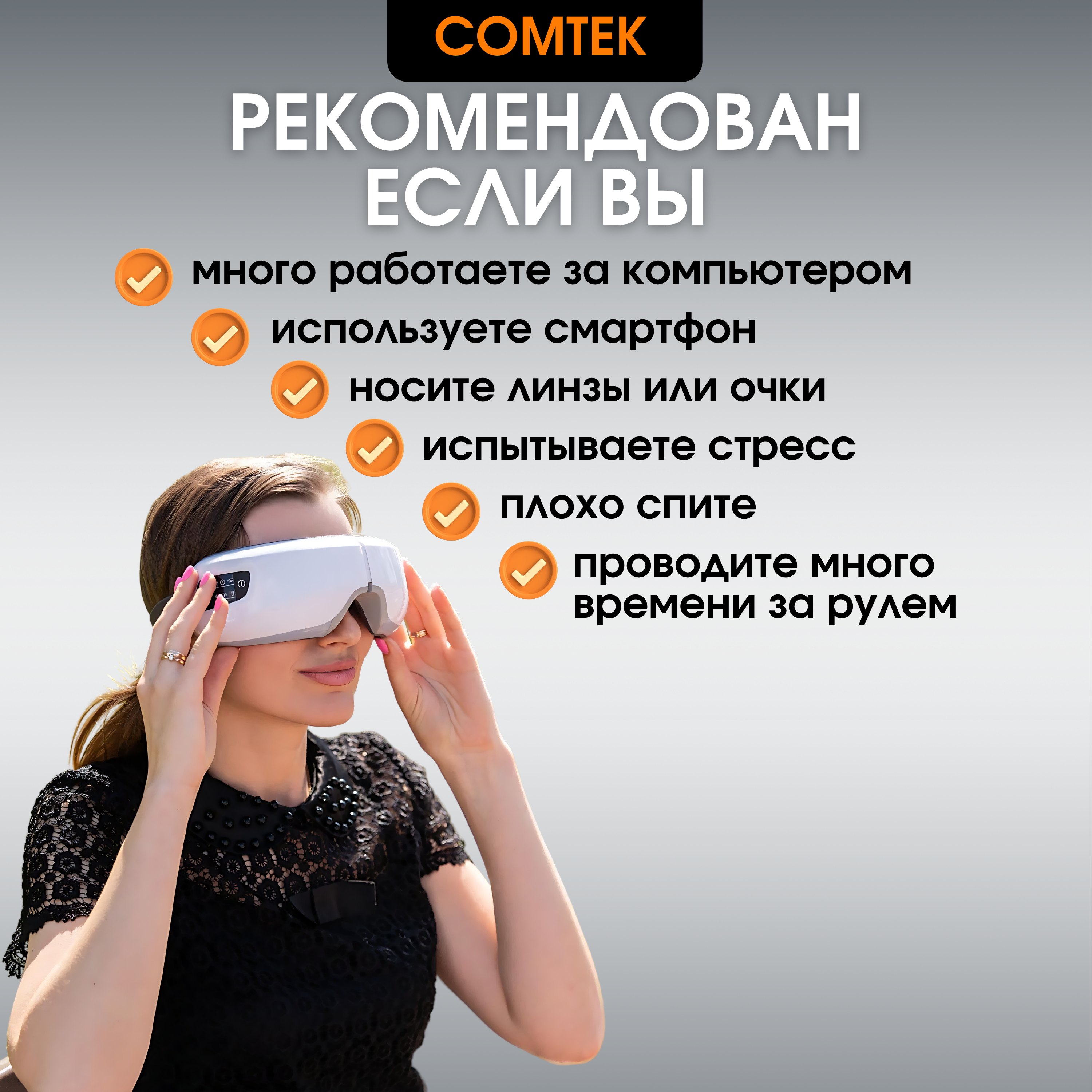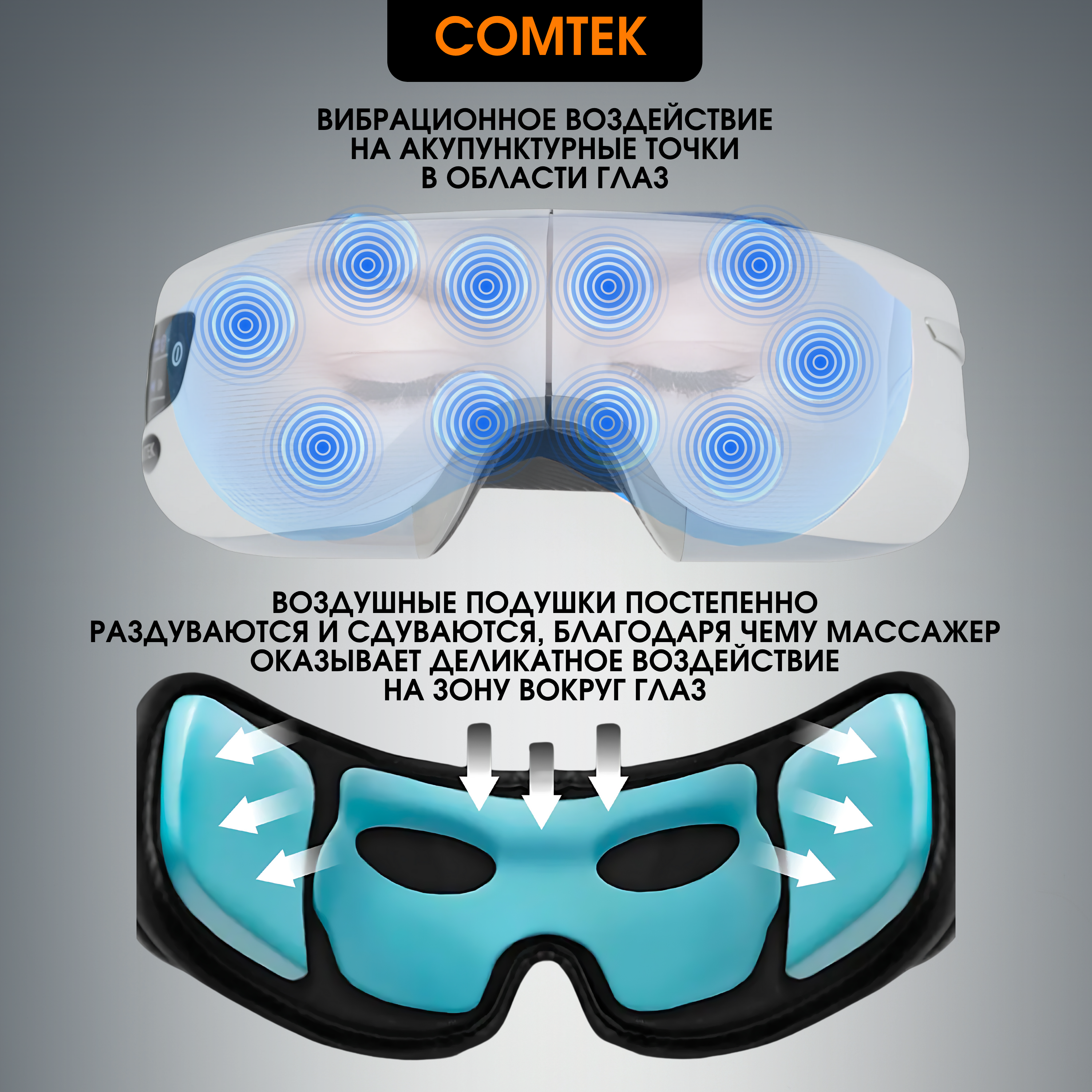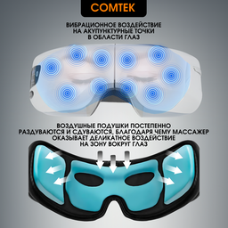 Массажер электронный Comtek 181; Назначение: для глаз; Функции: вибромассаж, подогрев, воздушно-компрессионный массаж; Количество режимов: 3; Питание: аккумулятор