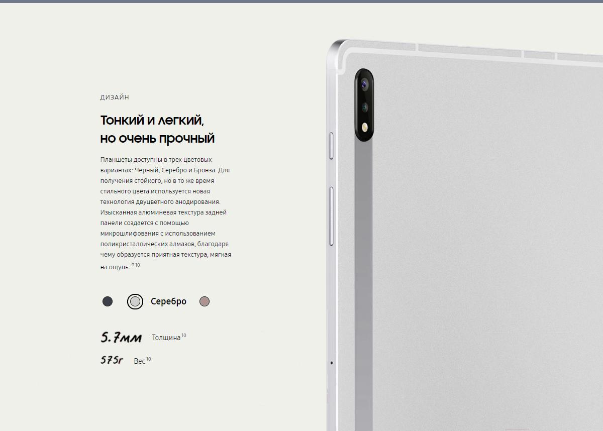 Планшет Samsung Galaxy Tab S7 128GB LTE / SM-T875 (серебристый); Диагональ экрана: 11"; Операционная система: Android 10; Поддержка SIM-карты: есть, 4G (LTE); Количество ядер: 8; Тактовая частота: 3090 МГц; Оперативная память: 6 Гб; Встроенная память: 128 Гб; Разрешение экрана: 2560x1600; Тип матрицы: TFT