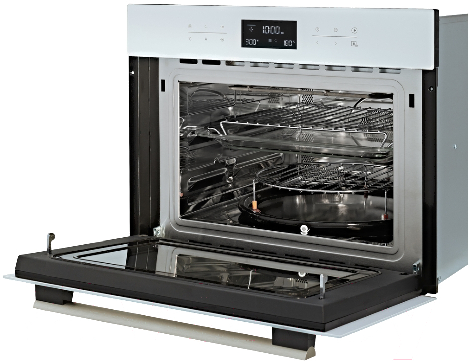 • В комплекте решетка (2 шт.), противень, поддон/емкость для воды (стекло)