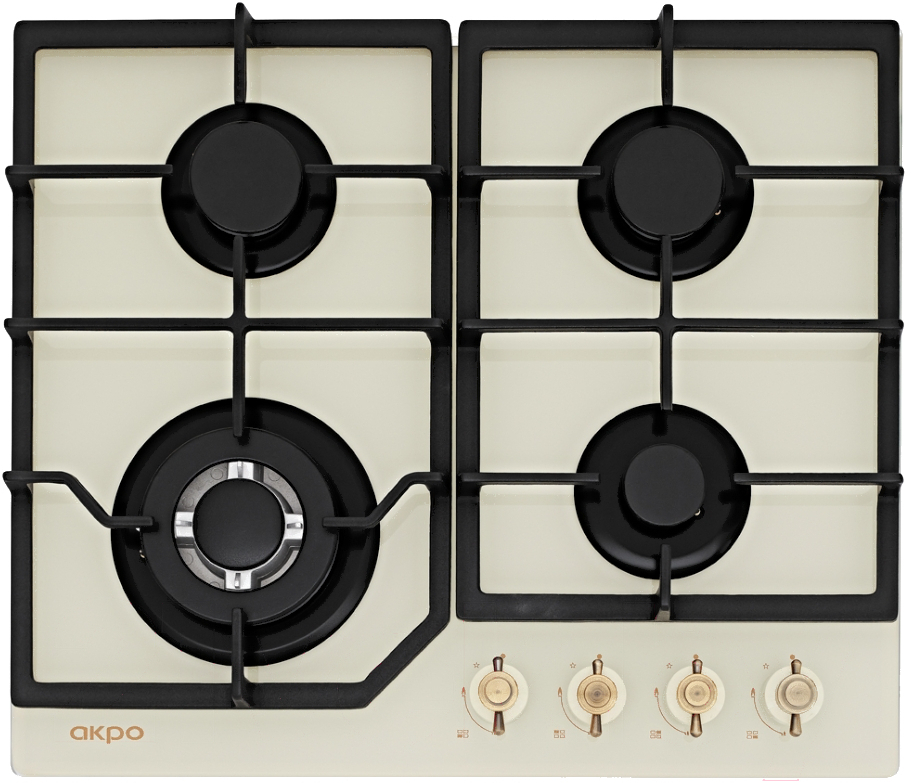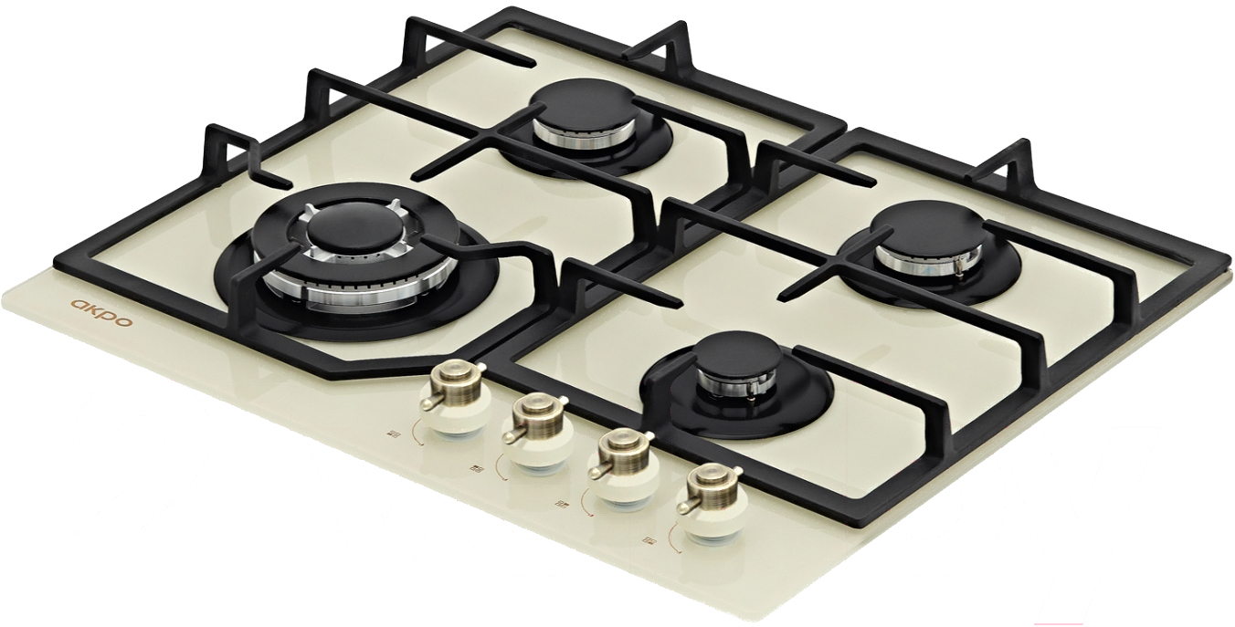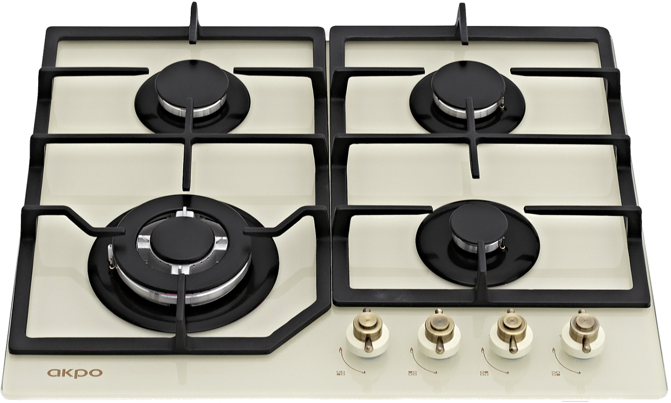 Газовая варочная панель Akpo PGA 604 FGC-2 IV; Рабочая поверхность: закаленное стекло; Установка: независимая; Общее количество конфорок/зон нагрева: 4; Электроподжиг: есть; Управление: механическое; Тип конфорок/зон нагрева: газовые стандартные, газовые «Двойная корона»